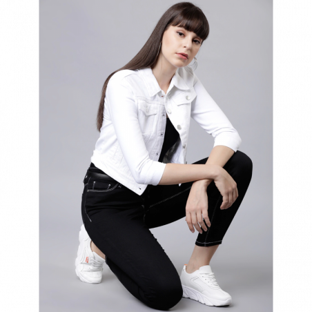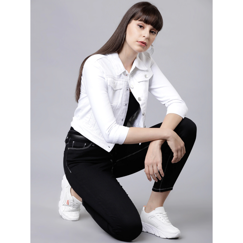 Tokyo Talkies Women White Solid Denim Jacket-M