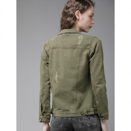 Roadster Women Olive Green Solid Denim Jacket-M