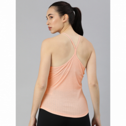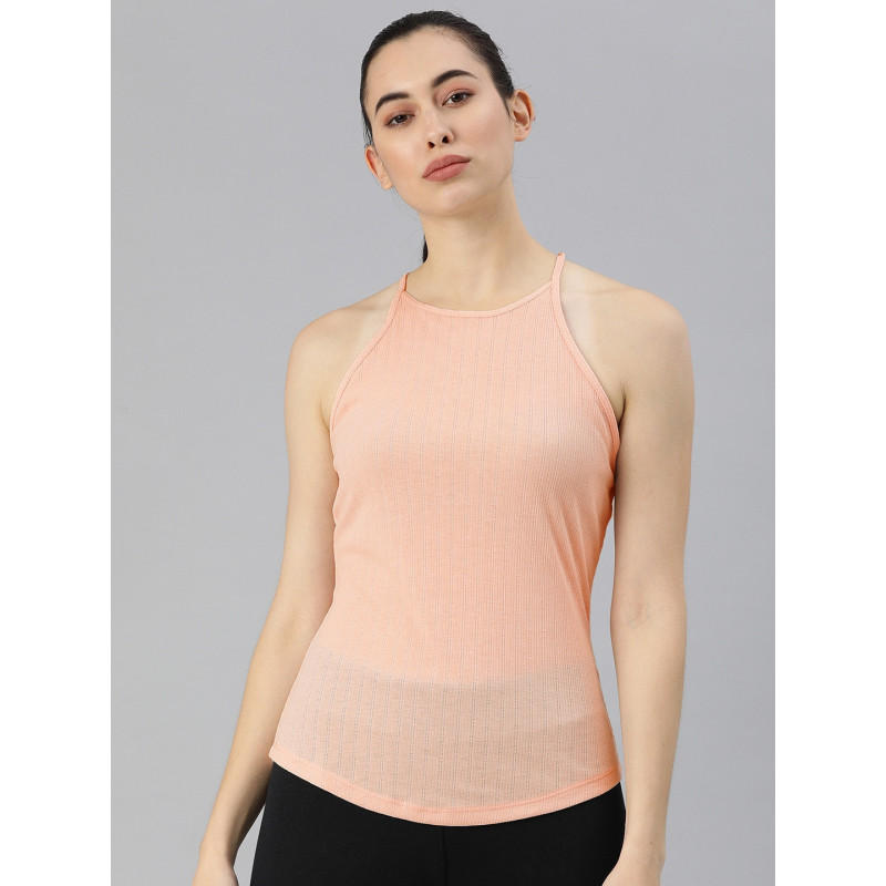 Nike Women Peach-Coloured Self Striped Pointelle Yoga Tank Top-M