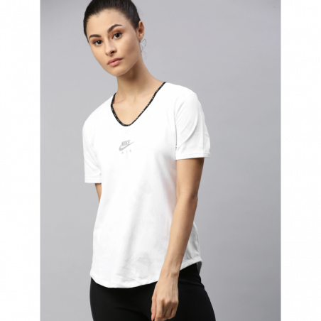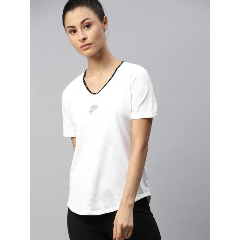 Nike Women White AS W NK AIR Solid Styled Back Running Top-M