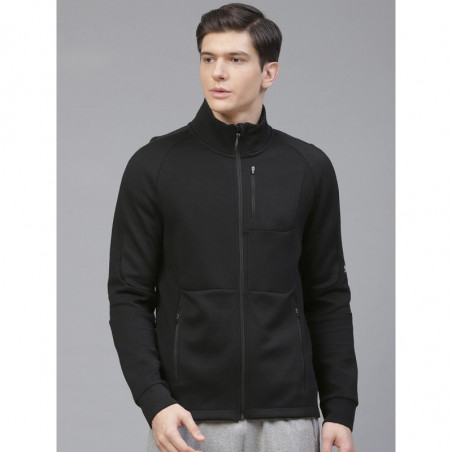 Men Black Evostripe Solid Slim Fit Track Jacket