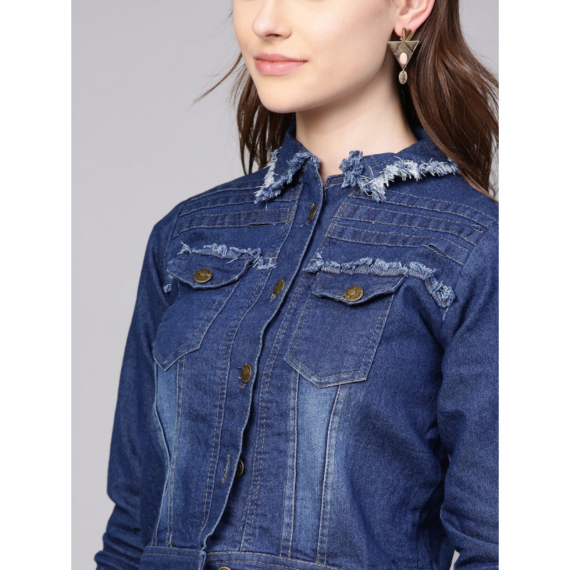 Bhama Couture Women Blue Embroidered Denim Jacket-M